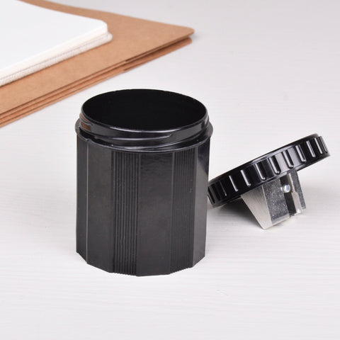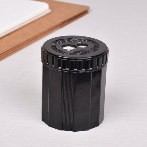 Enkel og klassisk blyantspisser med praktisk skrulokk laget av bakelitt til både store og små blyanter.