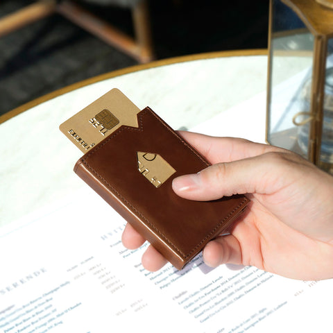 Kortholderen Wallet er en kombinasjon av lommebok og kortholder i skinn, fullpakket med smarte funksjoner. Wallet er liten i størrelsen og med stor lagringskapasitet, både til kort og selder, og gir enkel tilgang til dine mest brukte kort med en skyvelomme på hver utside. Totalt rommer kortholderen mellom 6-10 separate kort og har i tillegg et større rom med plass til sedler og kvitteringer og en smart liten lomme til billetter.