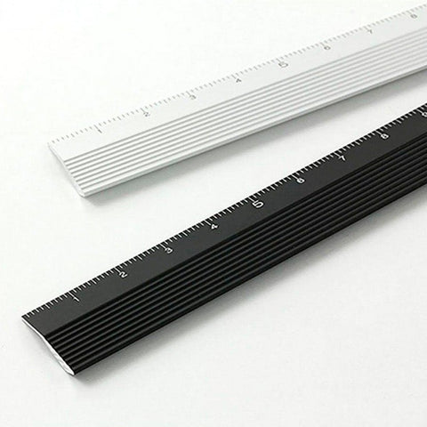 Midoris linjal i aluminium er stilfull og praktisk. Tallene er lasergravert så de ikke blir visket ut og under skrår den litt så den er lett å få opp fra underlaget. Linjalen passer fint i de fleste pennaler og finnes også i en sort utgave.