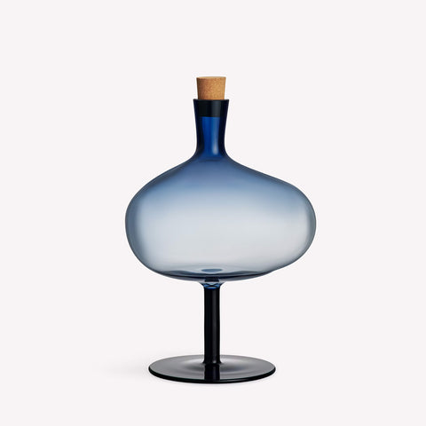 Bod has a sculptural shape that resembles a large blue bubble frozen in time. The colorful bottle is a decorative piece of art that will capture the play of light in any home. The bottle can be used as a carafe, vase or candle holder.