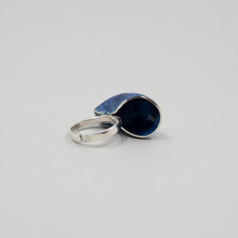 Lovely adjustable ring in silver and blue enamel from Linn Sigrid Bratland. The enamel has a cracked texture, which gives the ring an exciting and nice touch. The ring is made in Norway and is suitable for both everyday and party wear.