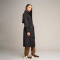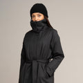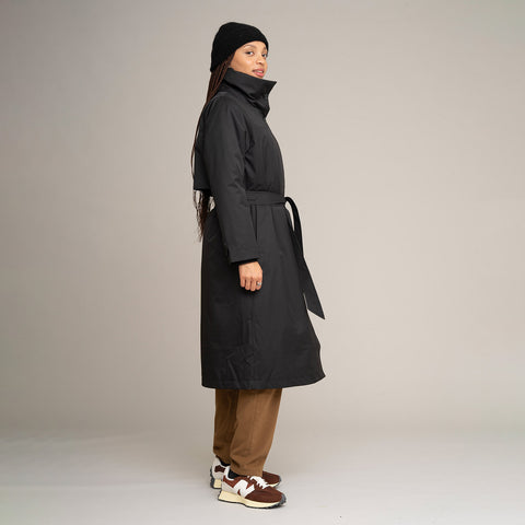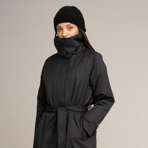 Kaia er en vanntett og pustende kåpe i resirkulert polyester med uttagbar fôr i resirkulert dun. SIden foret kan tas ut, gjør det kåpen til en helårskåpe.