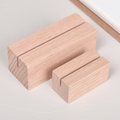 Bordkortholder i ubehandlet eik. Kan brukes som en holder eller stativ til bordkort, meny eller bordnummer. På toppen er det en 3mm bred slisse. Denne slissen går halvveis ned i klossen.