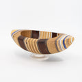 Er det en båt? Eller en bolle? Eller kanskje noe helt annet? Uansett hva øyet ser, slipper lyset gjennom og gjør formen luftig og lett. Gjenstanden er laget i resirkulert valnøtt, hentet fra en kassert trapp Thomas Jøranson fant på Bygdøy i Oslo. Kombinasjonen av treverk og plexiglass åpner for nye uttrykk og gir gjenstanden et unikt, poetisk preg.