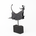 Skulpturen fra Lars Larsson er håndlaget i smijern og viser en ku i full bevegelse plassert på en sokkel.