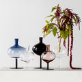 Bod has a sculptural shape that resembles a large blue bubble frozen in time. The colorful bottle is a decorative piece of art that will capture the play of light in any home. The bottle can be used as a carafe, vase or candle holder.