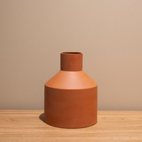 Handmade vase in terracotta from Guri Sandvik with a matte exterior and glazed interior.