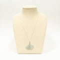 Ginko is a series of jewelery inspired by the Ginko Biloba tree. The leaves of the Ginko tree are a kind of hybrid between needles and leaves, they are thick, solid and ribbed with a distinctive structure. The jewelery reflects elements from the leaves and highlights its own shape and surface structure. The pendant comes with a chain.