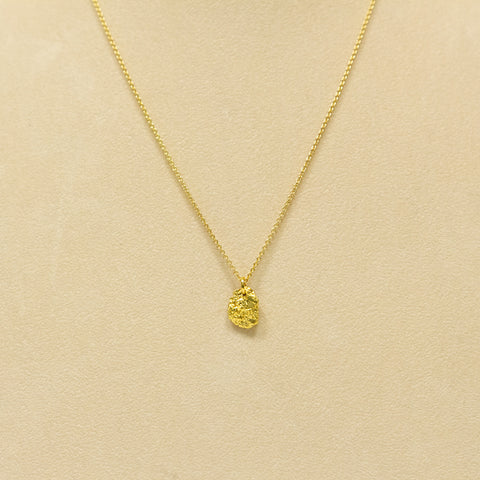 Beautiful pendants with crystallized texture. Crystallized is a small series of jewelery in which crystal structures are reproduced in gilded silver. At the micro level, metals, like stones, are built up of crystal structures. Mossige is fascinated by the fact that crystal structures are found in so many places in nature, and is attracted to the beauty of the structure itself.