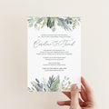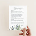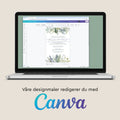 Here we present the invitation in the CAROLINE wedding series. The design is based on illustrations of leaves/branches in green and blue tones. We have combined them with decorative fonts and Harmonizing colors to create a modern and romantic expression. The card is printed on Conqueror Laid paper quality in 300 grams thickness in the color tone "Brilliant white". This is a classic paper that has a slightly ribbed texture and a white neutral tone.