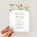 Here we present the invitation in the VICTORIA wedding series. The design is based on illustrations of summery flowers. We have combined decorative fonts and harmonizing colors to create a modern and romantic expression. The card is printed on Conqueror Laid paper quality in a thickness of 300 grams in the color tone "Brilliant white". This is a classic paper that has a slightly ribbed texture and a white neutral tone.