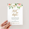 Here we present the "Save the Date" card in the VICTORIA wedding series. The design is based on illustrations of summery flowers. We have combined decorative fonts and harmonizing colors to create a modern and romantic expression. The card is printed on Conqueror Laid paper quality in a thickness of 300 grams in the color tone "Brilliant white". This is a classic paper that has a slightly ribbed texture and a white neutral tone.