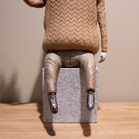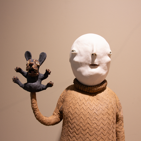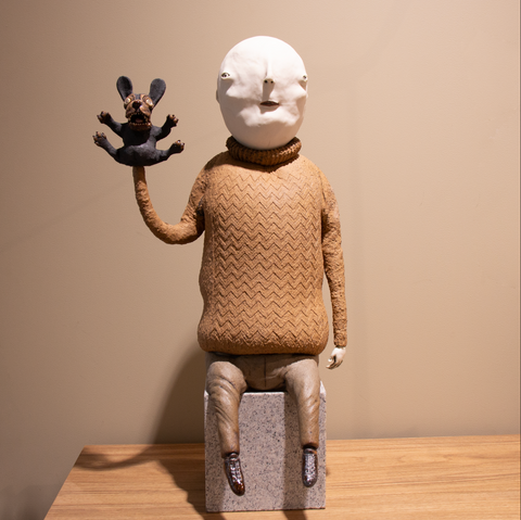 Ventriloquist with dog is a detailed and large sculpture with Ole Martin Skaug's well-known expression.