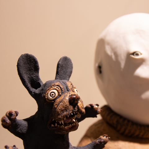 Ole Martin Skaug lives and works in Hølen, a small settlement by the river Såna in the south of Akershus, between Son and Vestby. Skaug has been a full-time sculptor since 1994 and works mainly with stoneware clay. Most of the production is in smaller formats, but he also creates larger installations. Skaug's work revolves around various expressions. Many of the works are caricatured, grotesque and humorous, others delicate, introverted and quiet, and Skaug alternates between these idioms. The idea work is a mixture of a disciplined, controlled process and spontaneous inspiration. Skaug tries to be open to what happens during the work with the sculptures, and often finds that the end result is something other than what was planned. It could be a line in the clay, a personality forcing its way through or a random texture begging to be used.