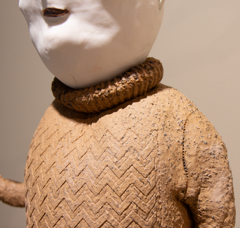 Ole Martin Skaug's sculptures are unique and are modeled by hand. Skaug uses a variety of different types of clay for his sculptures. Texture, plasticity and color produce different results and surfaces. Often several types of clay are used on one sculpture, sometimes up to 6-7 different types of clay. The raw fired works are treated with oxides, pigments and glazes before a final firing.