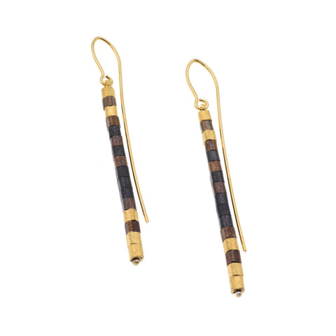 Cube Earrings Brown/Oxidized/Gilded Silver 4cm