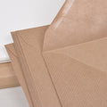 Envelopes from Norwegian Stefan Papir in a warm sand color called Kraft. Size A-7 (13.3x18.5cm) with V-flap. A-7 is a standard American format and it accommodates, for example, cards measuring 5 x 7 inches (12.7 x 17.78 cm). It should not be confused with the European (metric) standard for paper size A7. For example, the A-7 format is a cross between C6 and C5.