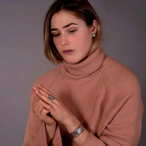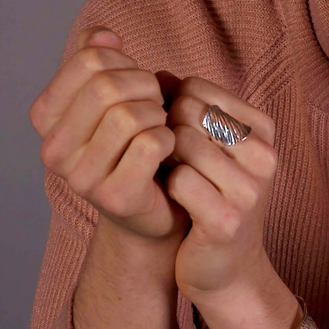 Krusning ring in the series with the same name from Hillestad is designed by Ditte Alstad. The ring has a beautiful pattern reminiscent of the ripples in water, is comfortable to wear, and the ring rail can be adjusted to your size.