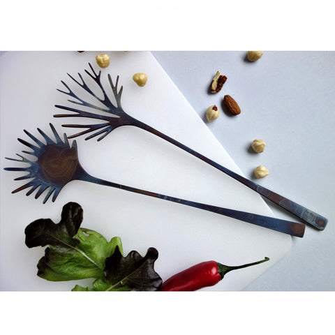 Salad cutlery in stainless steel with a patina that Latimeria itself calls "Velvet Steel".