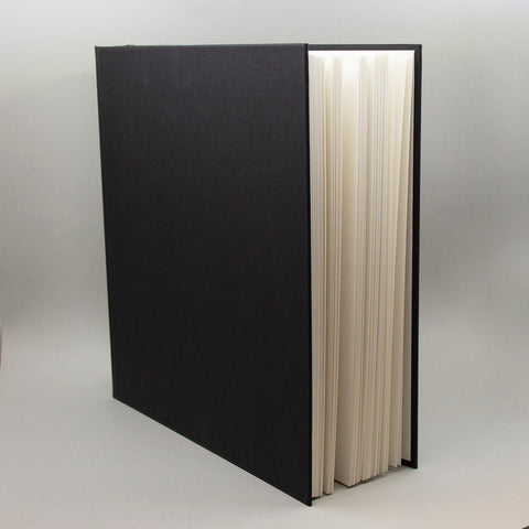 Hardcover sketch and drawing book with textile cover and sewn binding.
