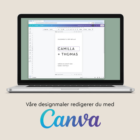 4. Then start editing using the tools. You can change text, fonts, colors and text placement. You can also upload images, illustrations or monograms if you wish. You cannot change the size or orientation of the design template. Changes are saved continuously and the template will remain in your profile for one year. If you have multiple projects, they are collected in a folder called "Projects" on the left side.