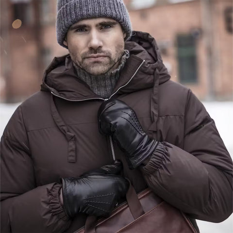 Wilson is a warm and elegant leather mitten for men for the coldest winter days. The mitten is timeless and sewn in Italian nappa lamb with hand-sewn decorative stitches on the top of the mitten. The mitten is lined with soft sheepskin and has an elasticated wrist that ensures a perfect fit.