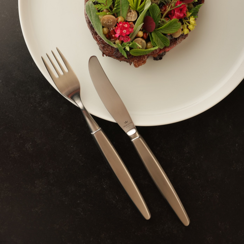 Det ikoniske Skaugum-bestikket i en ny, moderne tolkning. Med børstet overflate og samme tidløse design, kombinerer denne serien eleganse med funksjon. Bestikket er slitesterkt, laget for å vare, og selvfølgelig – klart for oppvaskmaskin.