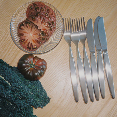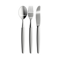 Settet består av 6 stk spiseskje, gaffel og kniv.