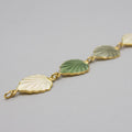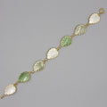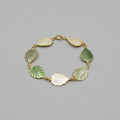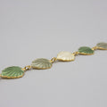 Nydelig armbånd med emalje fra Opro. Leddene i armbåndet er formet som blader i beige, lysegrønne og mørkegrønne farger. Produsert i Norge.