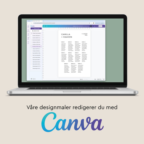Du kan enkelt redigere vår designmal og gjøre kortet mer personlig ved hjelp av den nettbaserte designplattformen CANVA.