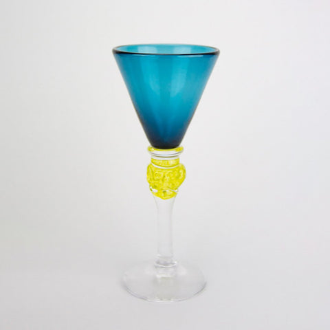 Drammeglass fra Kongsfoss Glass i nydelige farger. Glassene har en kule på stetten i en kontrastfarge og alle glassene er håndlagede og vil derfor ha små variasjoner.