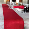 Flott vevet rød løper i 100% lin, produsert i Sverige. Løperen er vevet på rød renning, og passer perfekt enten rett på et bord eller over en duk.