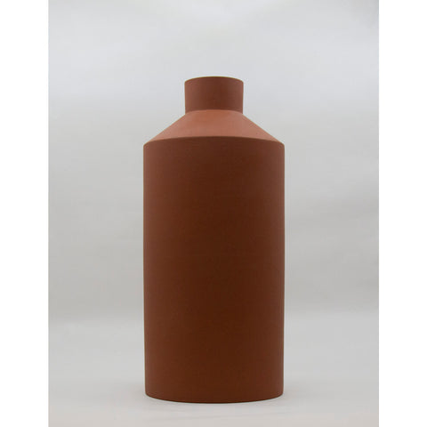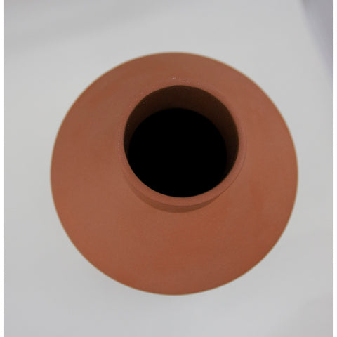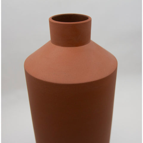 Håndlaget vase i terracotta fra Guri Sandvik med matt utside og glasert innside.