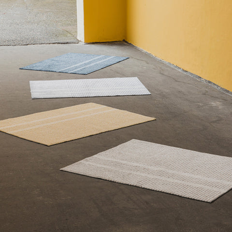 Det anerkjente Bergen-studioet Vera & Kyte har hentet inspirasjon fra skisporet til sin første kolleksjon for Heymat. Løypes enkle, grafiske mønstre minner om langrennssportens nypreparerte løyper, og designmattene egner seg like godt sommer som vinter. De melerte fargene gir ikke bare et mykt delikat inntrykk, men fungerer også godt for å skjule smuss.