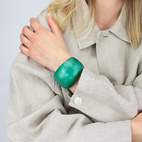 Nydelig armbånd i sølv og emalje fra Linn Sigrid Bratlands. Emaljen har krakelert tekstur, noe som gir armbåndet et spennende og fint preg. Smykket er laget i Norge og passer fint til både hverdags og fest.