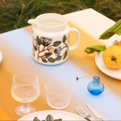 Marimekko er et finsk designhus som er anerkjent over hele verden for sine originale trykk og farger. Marimekko ble grunnlagt i 1951 av den visjonære kvinnen Armi Ratia, og er en av verdens første virkelige livsstilsmerker som kombinerer mote, vesker og tilbehør samt interiør i et tidløst, bærekraftig og funksjonelt design. Hjertet og sjelen til Marimekkos design er deres egen tekstilfabrikk i Helsingfors, hvor de dristige mønstrene og farger kommer til liv. Rundt en million meter stoff trykkes på fabrikken hvert år.