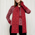 Skjerf fra Oleana i en blanding av merinoull og silke. Skjerfet består av ornamenterte firkanter med blomster som danner et intrikat mønster som vil løfte ethvert antrekk.