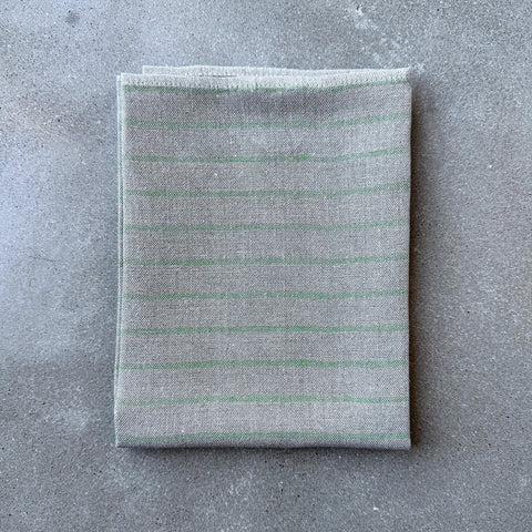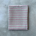 Håndkleet er vevd med ubleket lingarn og har en enkel og tidløs farget stripe i mønsteret, inspirert av gamle håndklær i lin fra Hälsingland i Sverige. Rand kommer med 6 forskjellige fargevarianter.