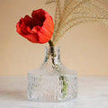 Blomsterbuketten kommer virkelig til sin rett i denne stilrene, men dekorative vasen.