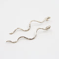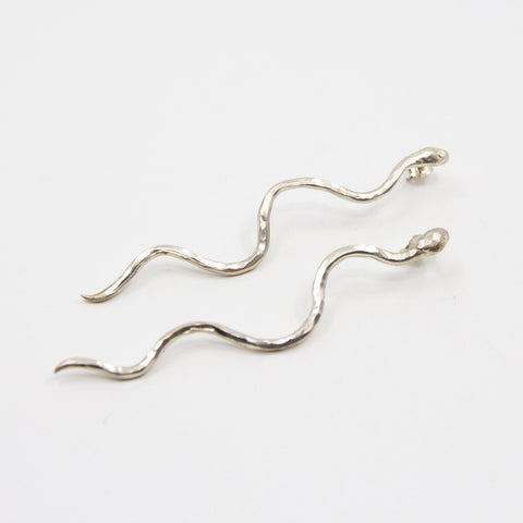 Øredobber i hamret sølv fra Hedvig Sommerfeldt. Øredobbene er formet som en slange i bevegelse. Produsert i Norge.