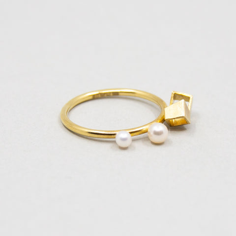 Square Double Ring Forgylt/Perle
